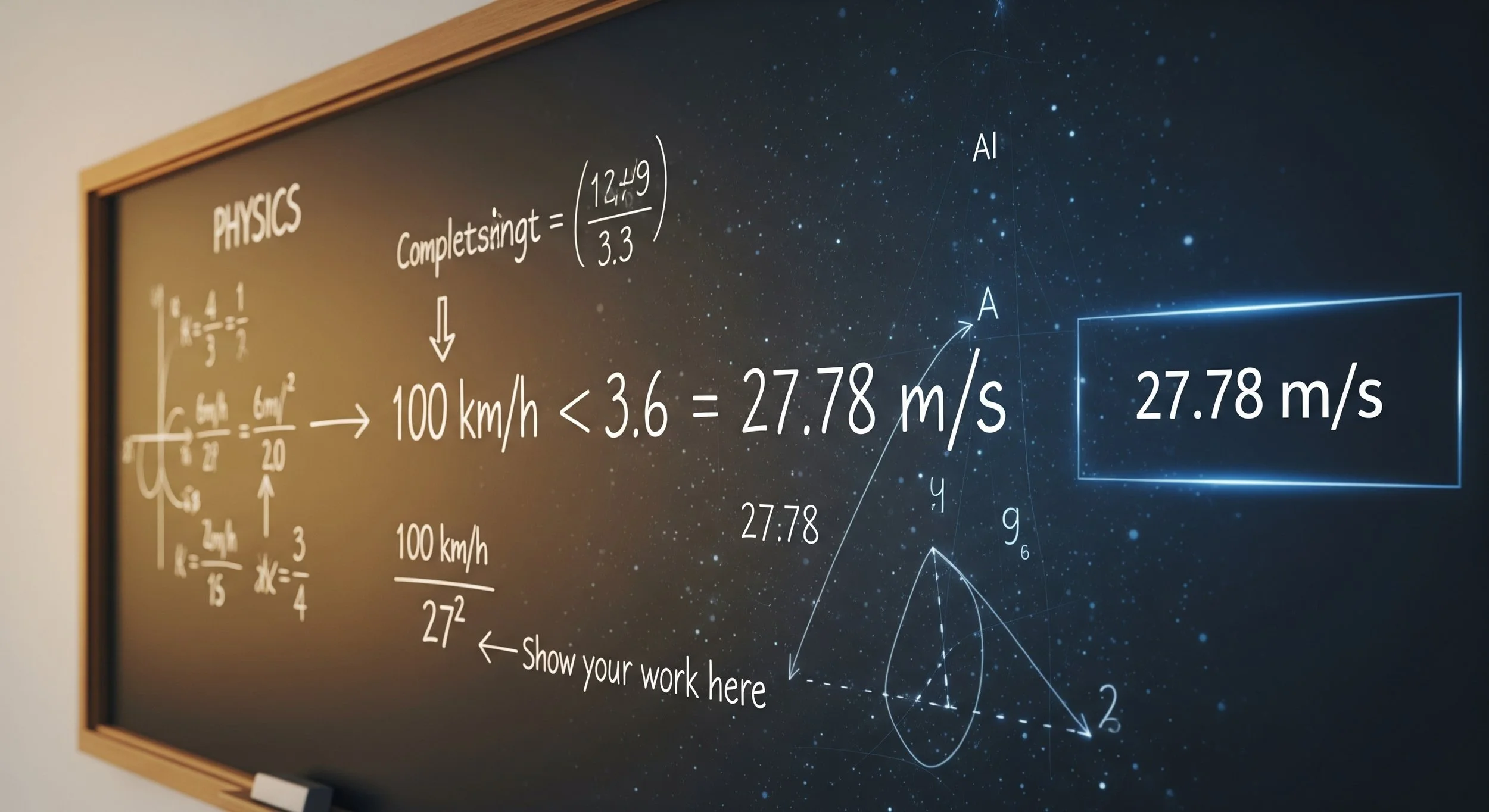 The solution came to me through an unlikely source: my high school physics teacher, Mr. Pulles. He had a maddening habit of rejecting correct answers. "100 km/h is not equal to 27.78 m/s," he'd tell me, "I need to see how you got there."